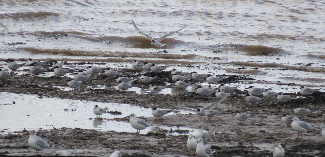 An adult and a juvenile/1st year Roseate Terns were found early morning roosting with Black-headed Gulls at New Passage but flew of at 07.23 (an adult and 1st winter Terns seen flying down river off Severn Beach at 08.00 were almost certainly these birds). Other reports from the New Passage/Pilning Wetland/Northwick Warth included 2 Mediterranean Gulls, a Common Tern, single Curlew Sandpiper, Whimbrel and Ruff, 2 Greenshank, 4 Common Sandpipers, 6 Snipe, 2 Sanderling, 17 Black-tailed Godwits, 45 Turnstones, 4 Wigeon, 3 Shoveler, 4 Wheatears, 2 Yellow Wagtails, single Hobby, Whinchat and Lesser Whitethroat. Reports from Aust Warth included single Knot, Short-eared Owl, Barn Owl, Kestrel and Wheatear. Click on the image below for a short video recording of the Roseate Terns. Only the 3rd Severnside record.