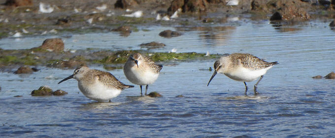 At least 7 juvenile Curlew Sandpipers, 48 Knot, 45 Black-tailed Godwits, 280 Dunlin, 12 Ringed Plover, 200 Redshank and 20 Turnstones were seen in the New Passage area.